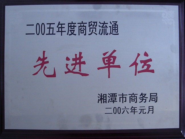 2006.01 湘潭市商务局授予湖南龙行天下酒业有限公司2005年度商贸流通先进单位。